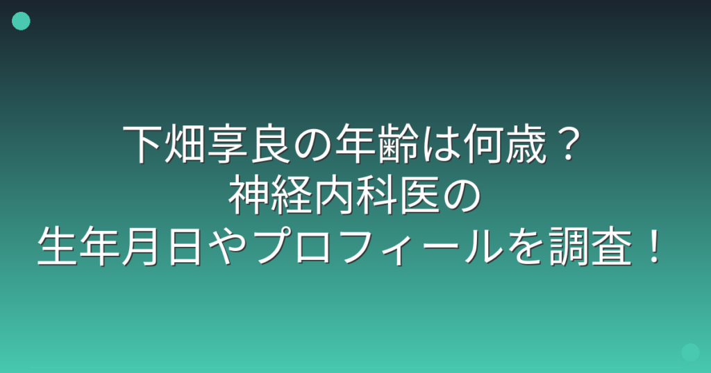 下畑享良の年齢は何歳?神経内科医の生年月日やプロフィールを調査!