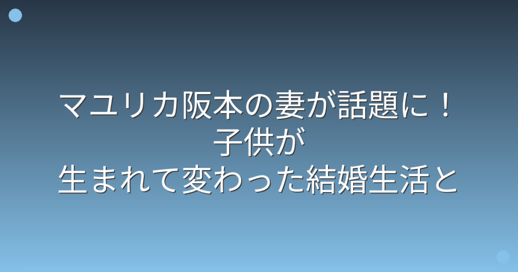 マユリカ阪本の妻が話題に!子供が生まれて変わった結婚生活と将来設計は?
