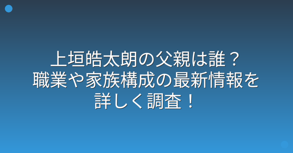 上垣皓太朗の父親は誰?職業や家族構成の最新情報を詳しく調査!