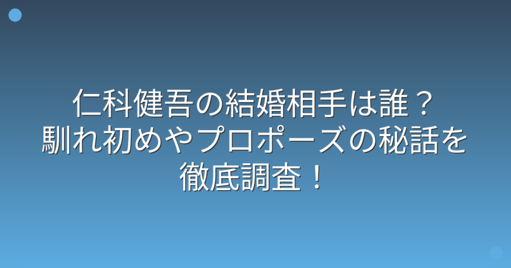 仁科健吾の結婚相手は誰?馴れ初めやプロポーズの秘話を徹底調査!