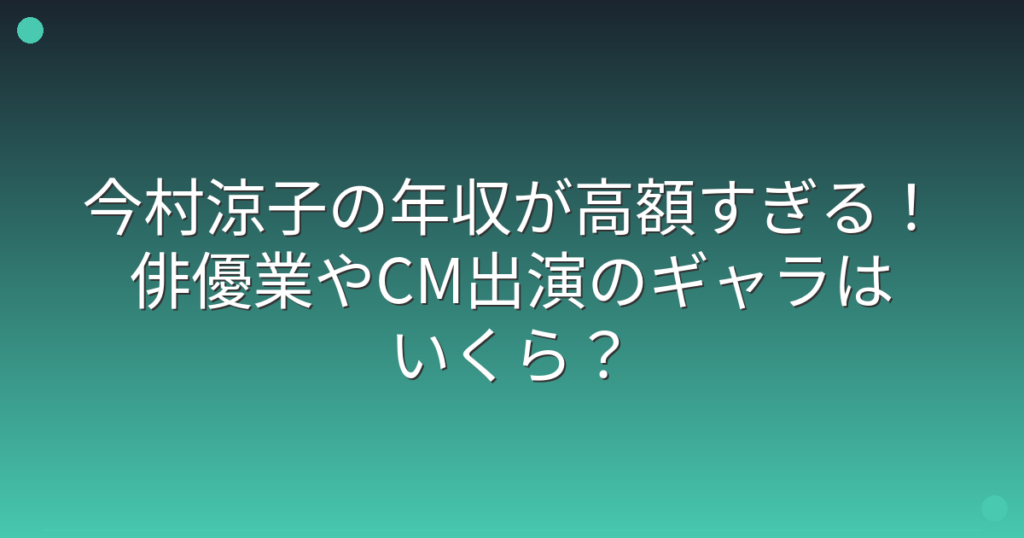今村涼子の年収が高額すぎる!俳優業やCM出演のギャラはいくら?