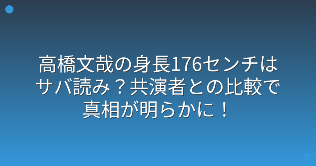 高橋文哉の身長176センチはサバ読み?共演者との比較で真相が明らかに!