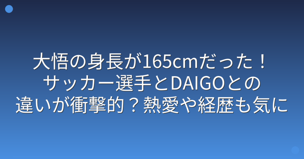 「大悟」と言えば、サッカー選手の髙橋大悟さん、ミュージシャンのDAIGOさん、お笑い芸人の千鳥・大悟さんなど、様々な分野で活躍する方々がいます。 特に最近では、それぞれの活動が注目を集めており、ファンの間で身長についての関心が高まっています。 ...