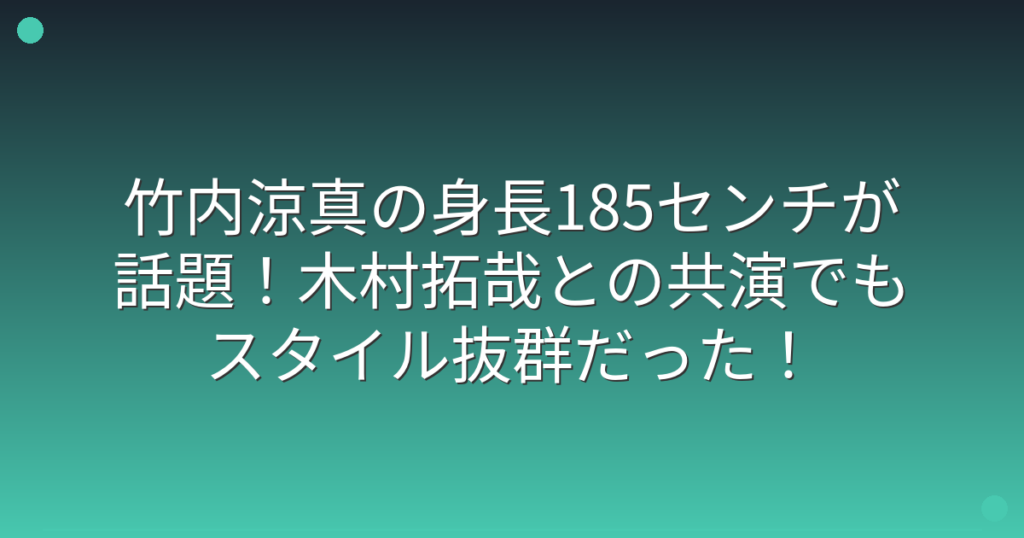 最近、若手俳優の中でも抜群のスタイルを誇る竹内涼真さんが注目を集めています。 特に木村拓哉さんとの共演シーンで際立った高身長が話題となり、ファンの間で大きな反響を呼んでいます。 そこで今回は、竹内涼真さんの身長や体型について、最新情報とと... -