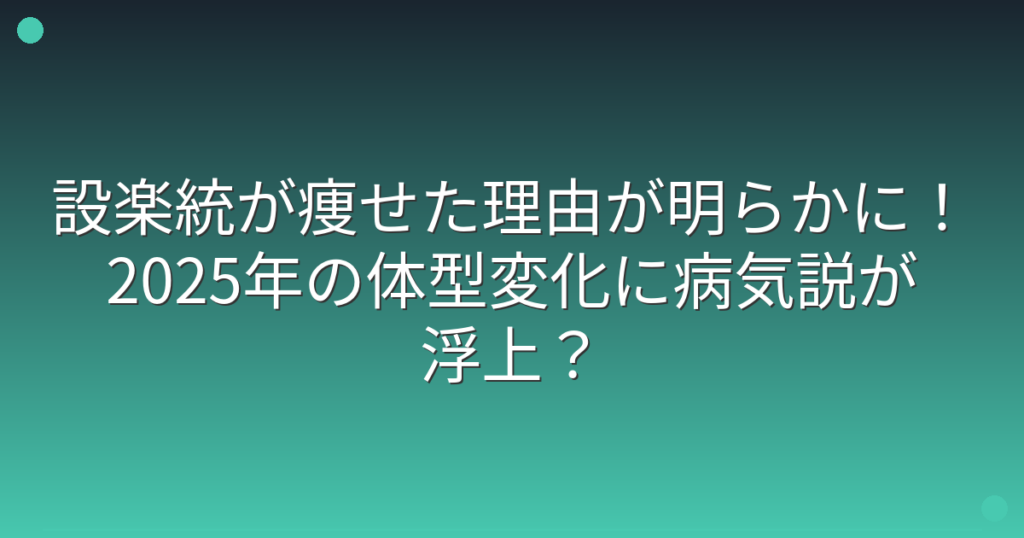 設楽統が痩せた理由が明らかに!2025年の体型変化に病気説が浮上?