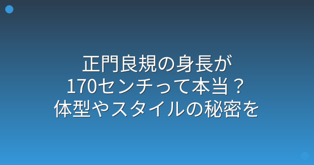 正門良規の身長が170センチって本当?体型やスタイルの秘密を徹底解説!