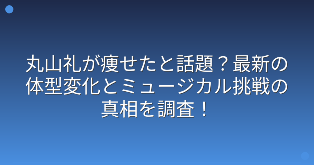 丸山礼が痩せたと話題?最新の体型変化とミュージカル挑戦の真相を調査!