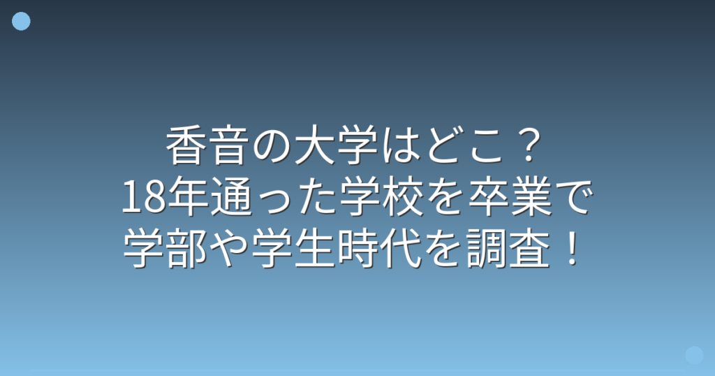 香音の大学はどこ?18年通った学校を卒業で学部や学生時代を調査!