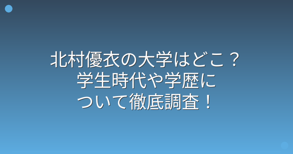 女優として活躍している北村優衣さんですが、大学や学歴について気になる方が多いようですね。 映画やドラマで注目を集める北村優衣さんの学生時代や出身大学について、多くの方が関心を持っています。 そこで今回は、北村優衣さんの大学や学歴、学生時代... -