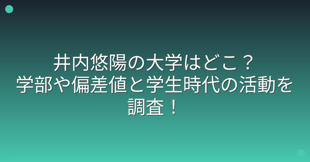 井内悠陽の大学はどこ?学部や偏差値と学生時代の活動を調査!