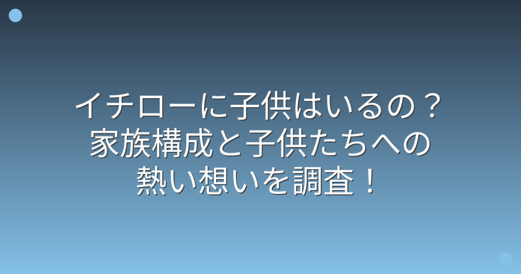 野球界のレジェンド、イチローさんに子供はいるのか気になっている方も多いのではないでしょうか。 プライベートをあまり明かさないイチローさんですが、最近は子供たちとの交流が話題になっていますね。 そこで今回は、イチローさんの家族構成や子供に関... -