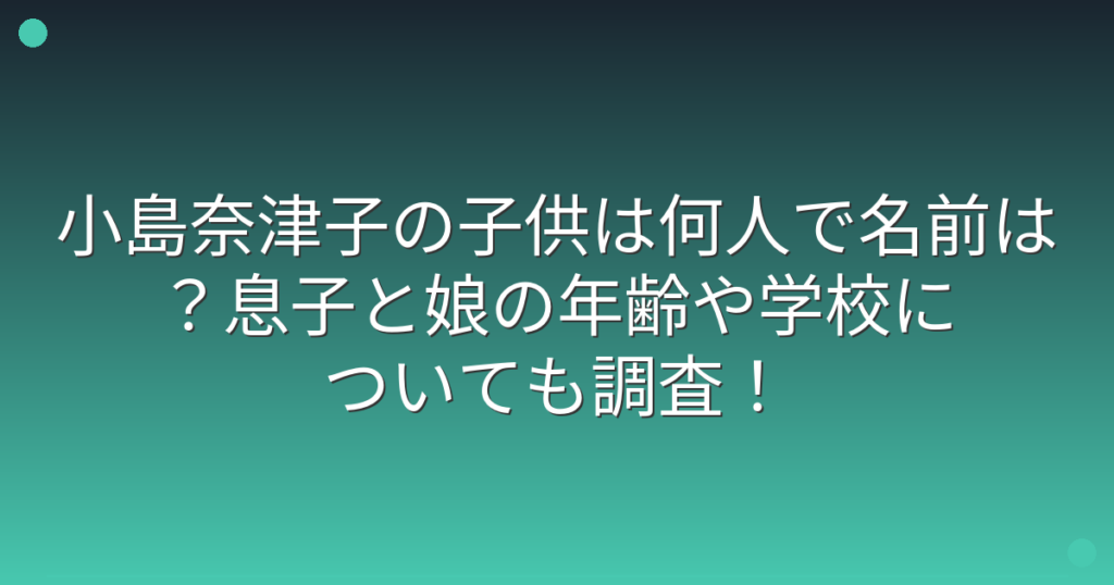 小島奈津子の子供は何人で名前は?息子と娘の年齢や学校についても調査!