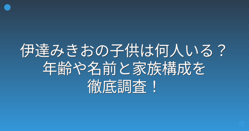 伊達みきおの子供は何人いる?年齢や名前と家族構成を徹底調査!