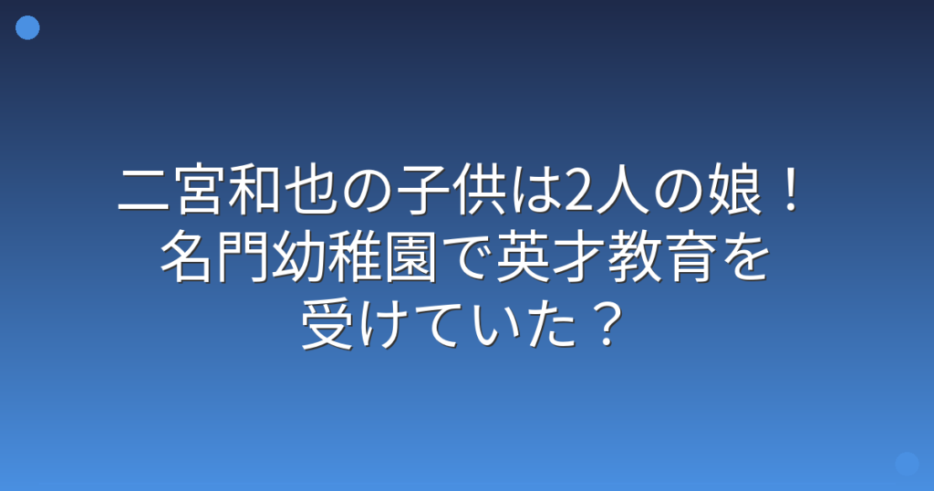 二宮和也の子供は2人の娘!名門幼稚園で英才教育を受けていた?