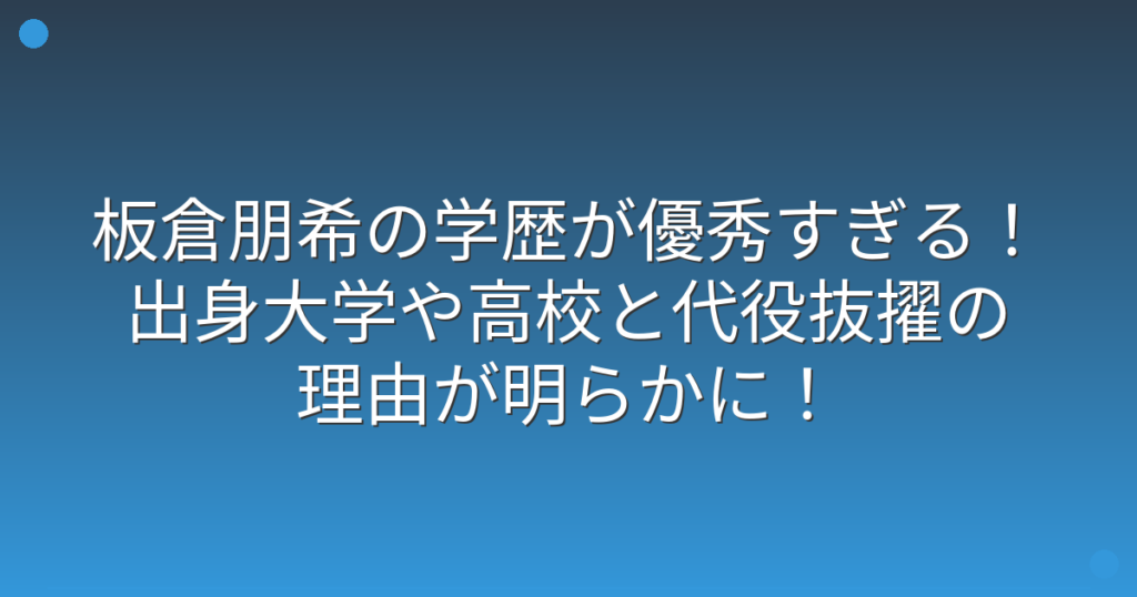 板倉朋希の学歴が優秀すぎる!出身大学や高校と代役抜擢の理由が明らかに!