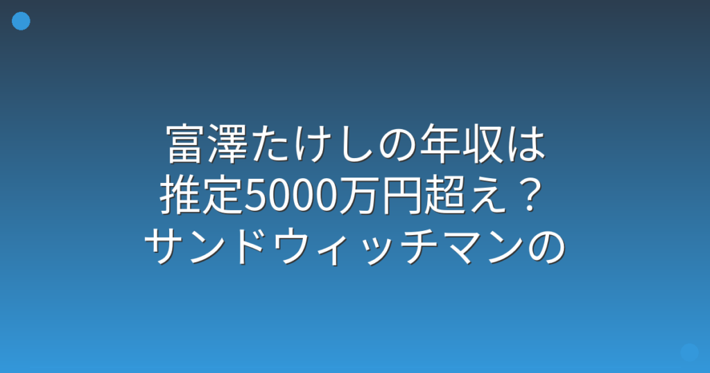 富澤たけしの年収は推定5000万円超え?サンドウィッチマンのギャラや収入源を調査!