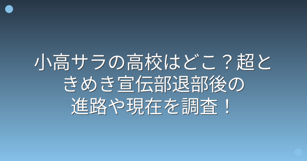 小高サラの高校はどこ?超ときめき宣伝部退部後の進路や現在を調査!