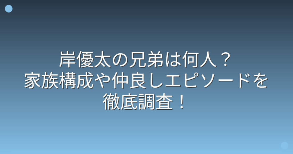 岸優太の兄弟は何人?家族構成や仲良しエピソードを徹底調査!