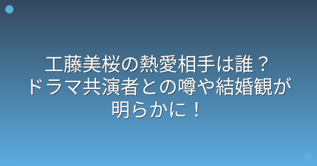 工藤美桜の熱愛相手は誰?ドラマ共演者との噂や結婚観が明らかに!
