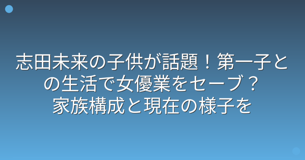 人気女優の志田未来さんの子育て生活が、最近注目を集めています。 2018年の結婚後、第一子の母親となったと報じられている志田未来さんですが、プライバシーを重視する姿勢から詳細な情報は明かしていません。 そこで今回は、志田未来さんの子供や家族構...