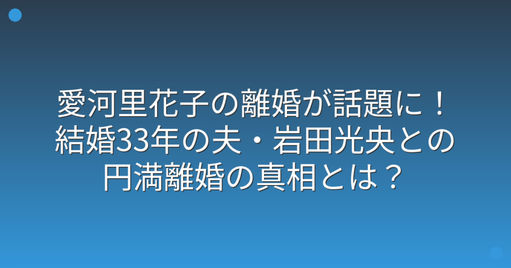 愛河里花子の離婚が話題に!結婚33年の夫・岩田光央との円満離婚の真相とは?