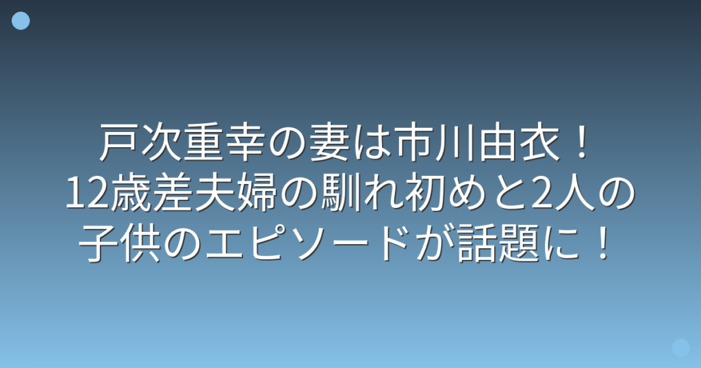 戸次重幸の妻は市川由衣!12歳差夫婦の馴れ初めと2人の子供のエピソードが話題に!