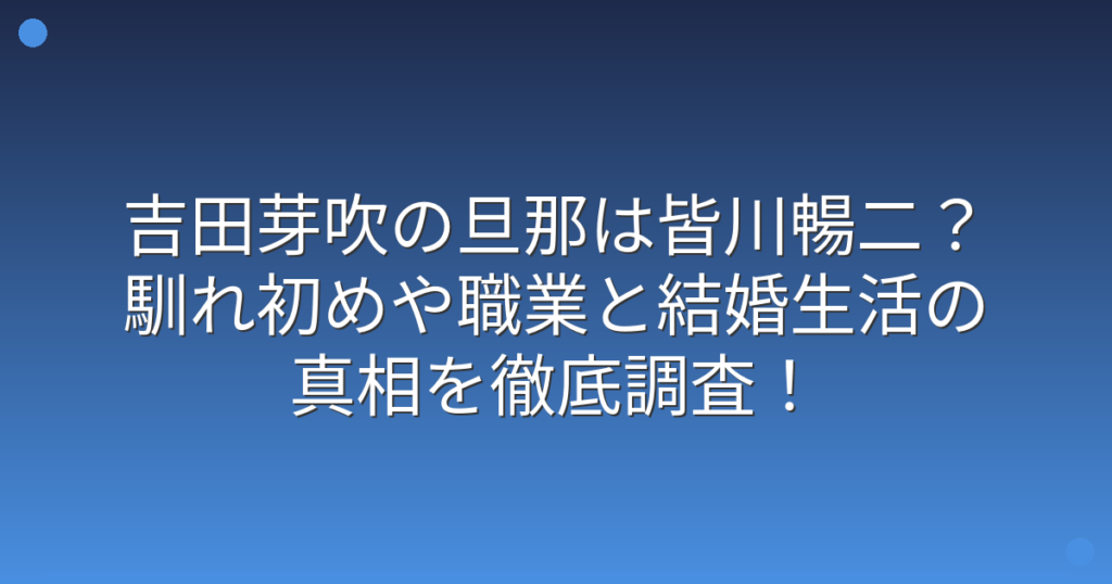 吉田芽吹の旦那は皆川暢二?馴れ初めや職業と結婚生活の真相を徹底調査!