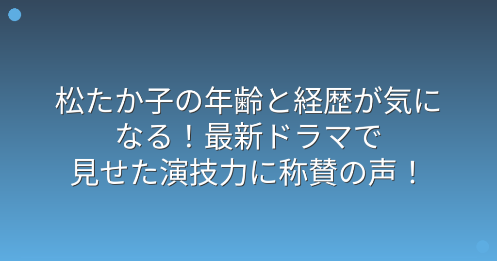 最近、ドラマ『しあわせな結婚』で話題の松たか子さんについて、年齢や経歴に注目が集まっています。 実力派女優として知られる松たか子さんですが、その年齢を気にする声が多く聞かれます。 そこで今回は、松たか子さんの年齢や経歴、最新の活躍について...