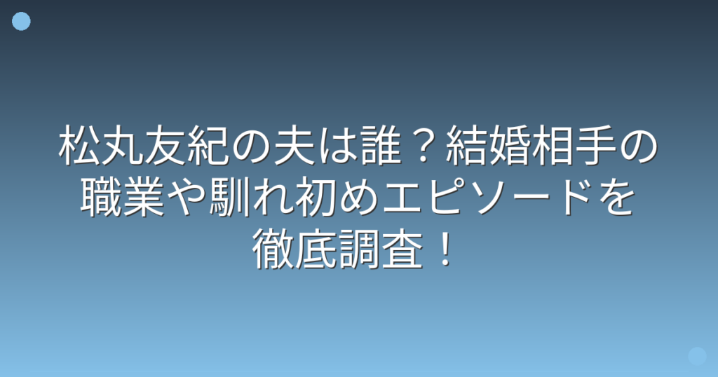 松丸友紀の夫は誰?結婚相手の職業や馴れ初めエピソードを徹底調査!