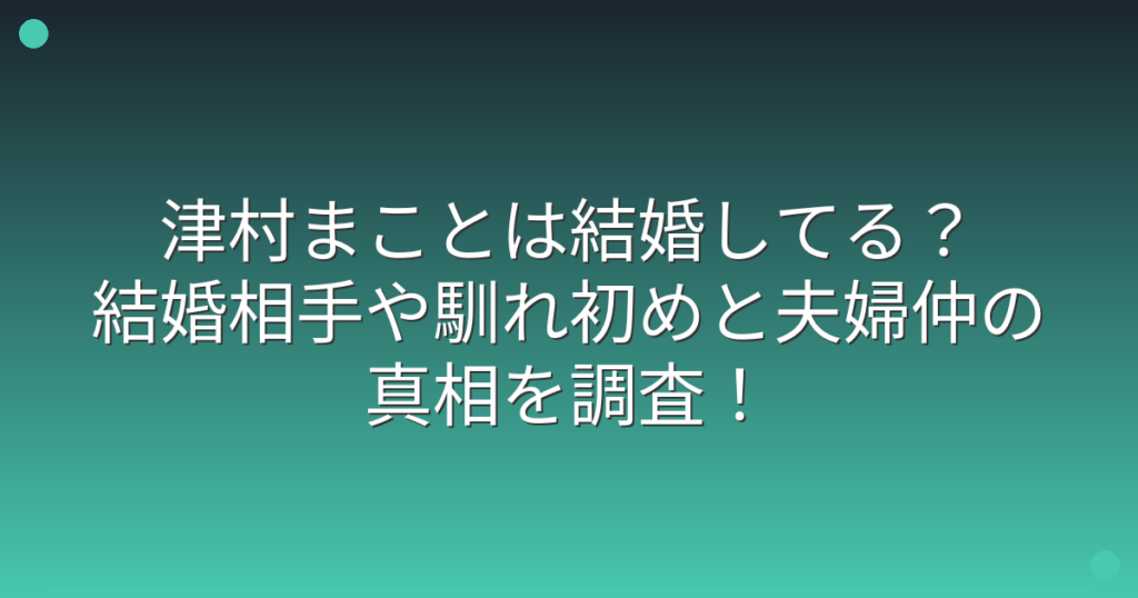津村まことは結婚してる?結婚相手や馴れ初めと夫婦仲の真相を調査!