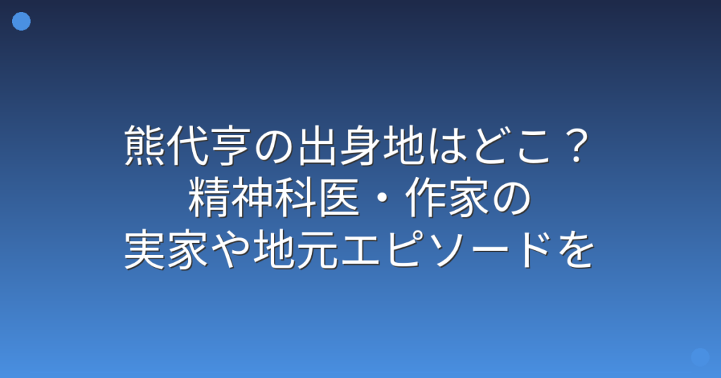 熊代亨の出身地はどこ?精神科医・作家の実家や地元エピソードを徹底調査!