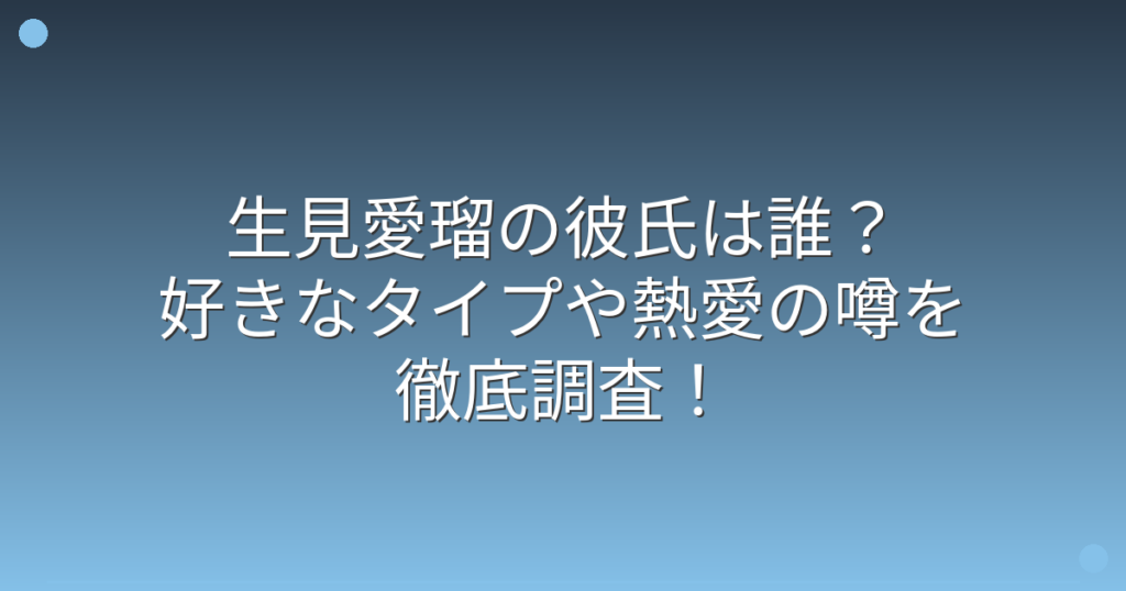 生見愛瑠の彼氏は誰?好きなタイプや熱愛の噂を徹底調査!