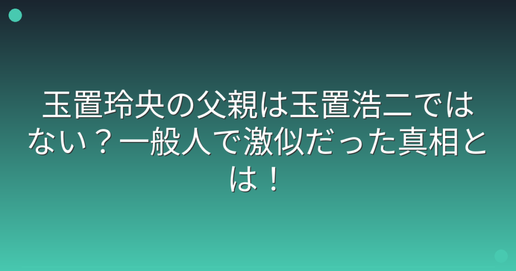 玉置玲央の父親は玉置浩二ではない?一般人で激似だった真相とは!