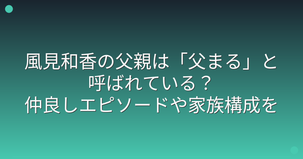 風見和香の父親は「父まる」と呼ばれている?仲良しエピソードや家族構成を調査!
