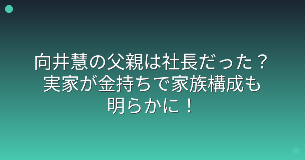 向井慧の父親は社長だった?実家が金持ちで家族構成も明らかに!