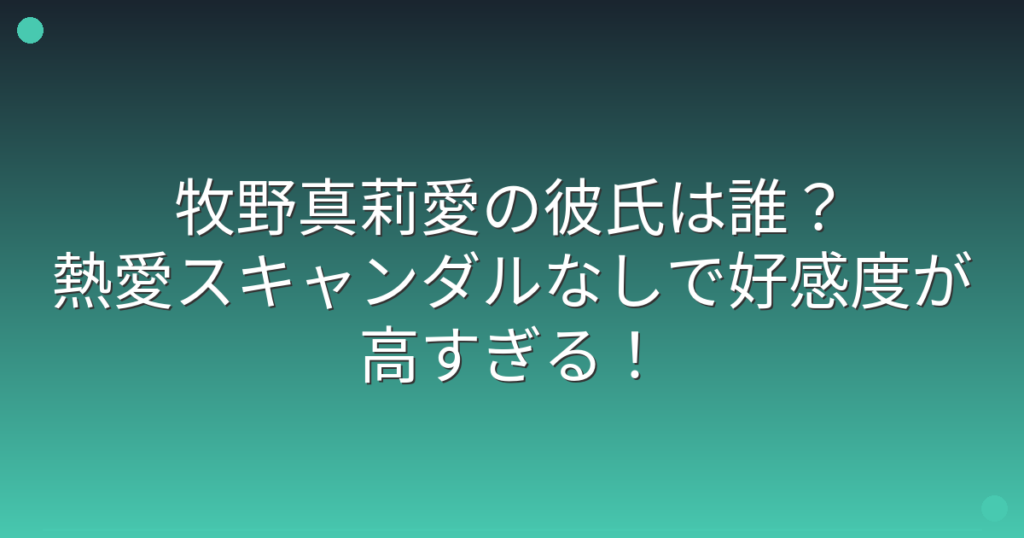 牧野真莉愛の彼氏は誰?熱愛スキャンダルなしで好感度が高すぎる!