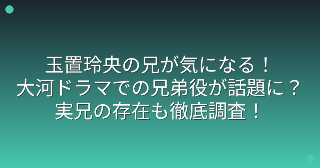 玉置玲央の兄が気になる!大河ドラマでの兄弟役が話題に?実兄の存在も徹底調査!