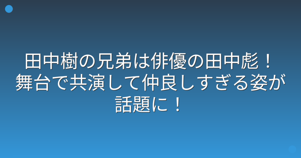 SixTONESの田中樹さんと兄の田中彪さんが、舞台での共演で大きな話題を呼んでいますね。 特に、田中樹さんが兄の膝の上に座るオフショットが公開され、ファンの間で「尊い」と大きな反響を呼んでいます。 そこで今回は、田中樹さんの兄弟関係や、話題の舞...