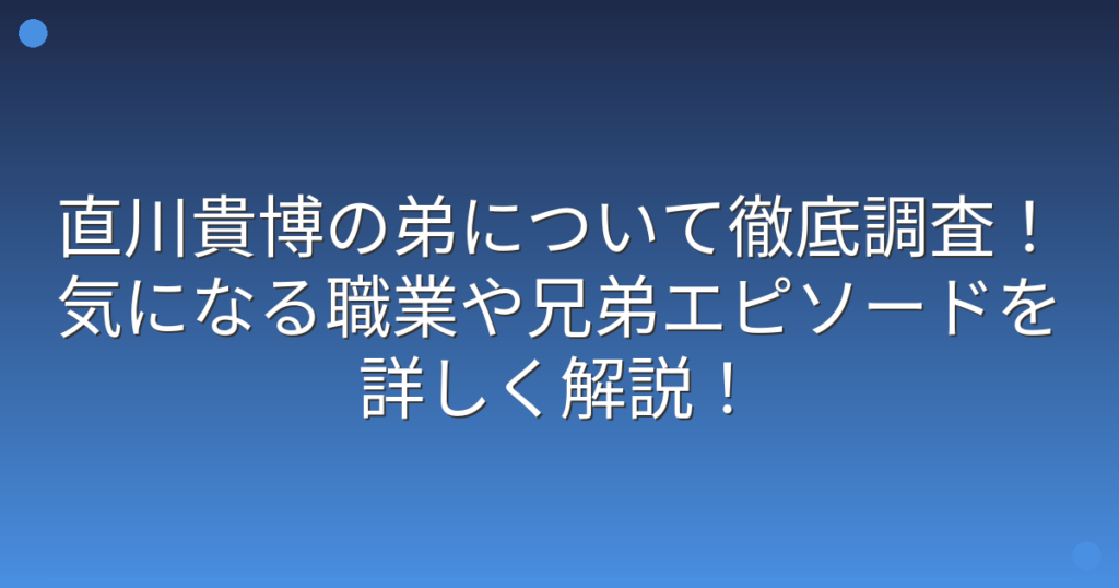 直川貴博の弟について徹底調査!気になる職業や兄弟エピソードを詳しく解説!