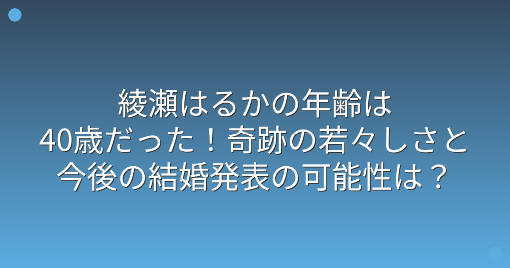 綾瀬はるかの年齢は40歳だった!奇跡の若々しさと今後の結婚発表の可能性は?