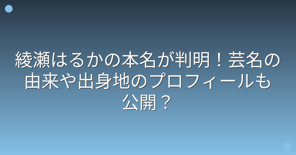 綾瀬はるかの本名が判明!芸名の由来や出身地のプロフィールも公開?