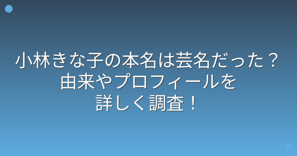 小林きな子の本名は芸名だった?由来やプロフィールを詳しく調査!