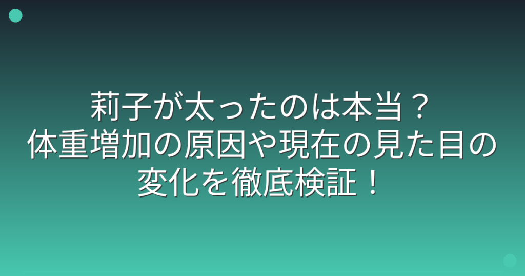 莉子が太ったのは本当?体重増加の原因や現在の見た目の変化を徹底検証!