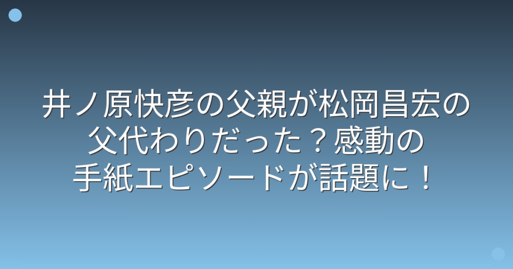 井ノ原快彦の父親が松岡昌宏の父代わりだった?感動の手紙エピソードが話題に!