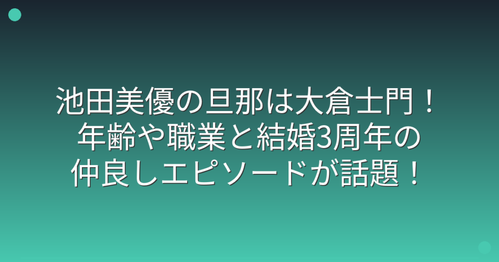 池田美優の旦那は大倉士門!年齢や職業と結婚3周年の仲良しエピソードが話題!