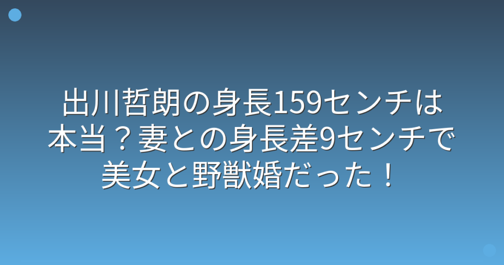 バラエティ番組で大活躍中の出川哲朗さんの身長が話題になっていますね。 「出川哲朗の充電させてもらえませんか?」での前田敦子さんとの背比べエピソードや、妻との身長差が注目を集めています。 そこで今回は、出川哲朗さんの身長や妻との身長差、そし... -