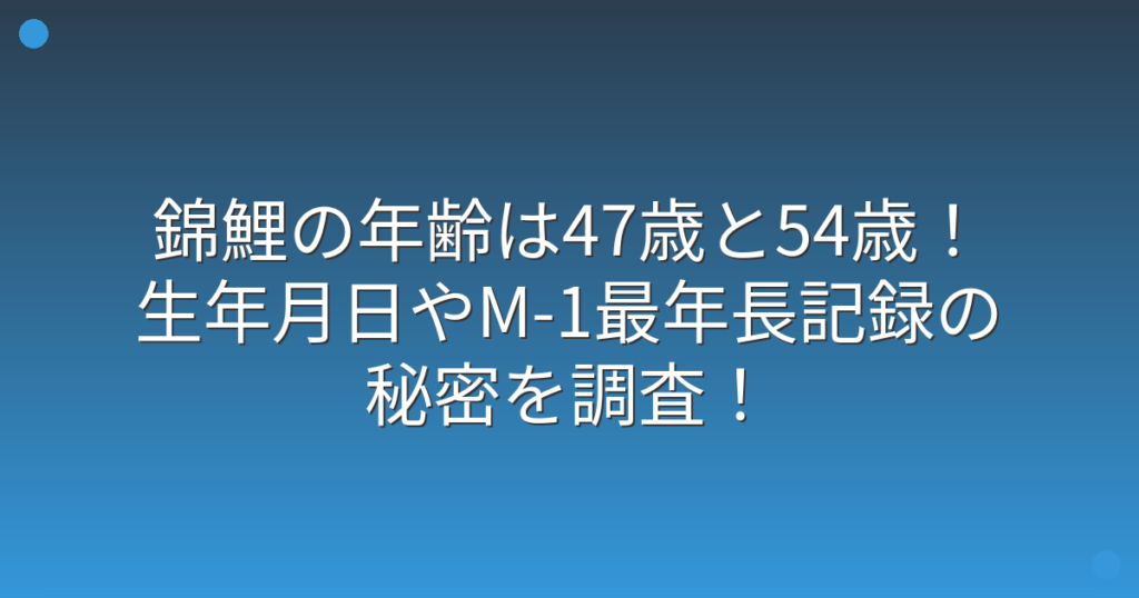 錦鯉の年齢は47歳と54歳!生年月日やM-1最年長記録の秘密を調査!