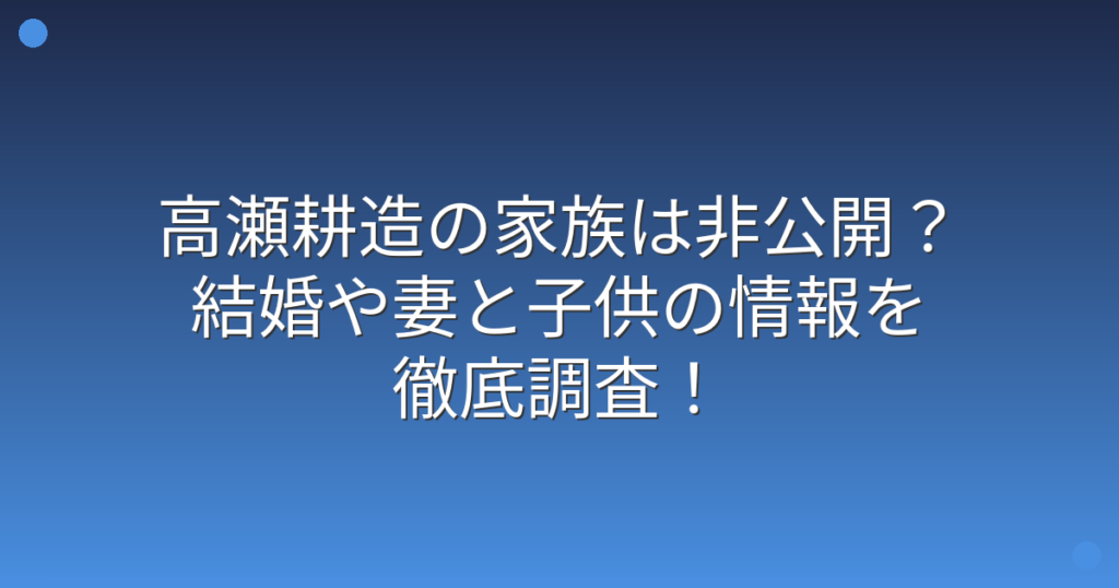 高瀬耕造の家族は非公開?結婚や妻と子供の情報を徹底調査!