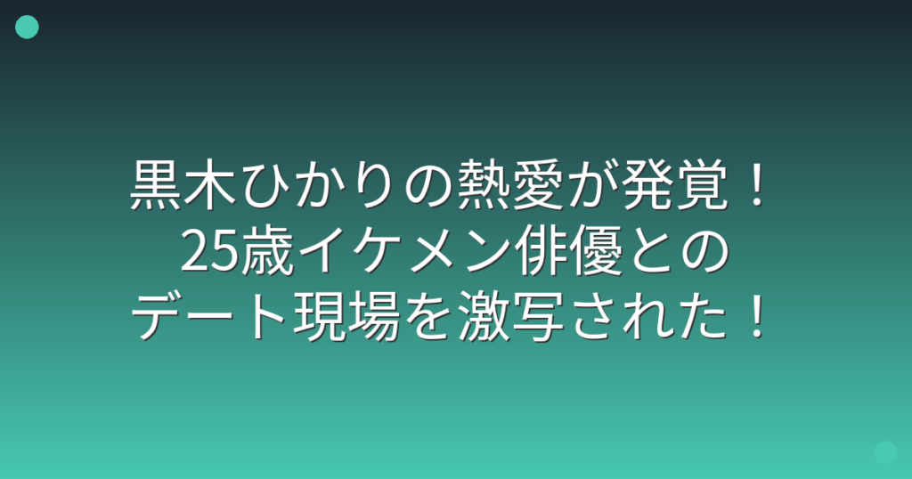 人気グラビアアイドルの黒木ひかりさんの熱愛が話題になっています。 複数の目撃情報によると、都内で人気イケメン俳優とのデートをしている姿が目撃されたとのことです。 そこで今回は、黒木ひかりさんの熱愛報道について、お相手や交際の経緯、今後の展...