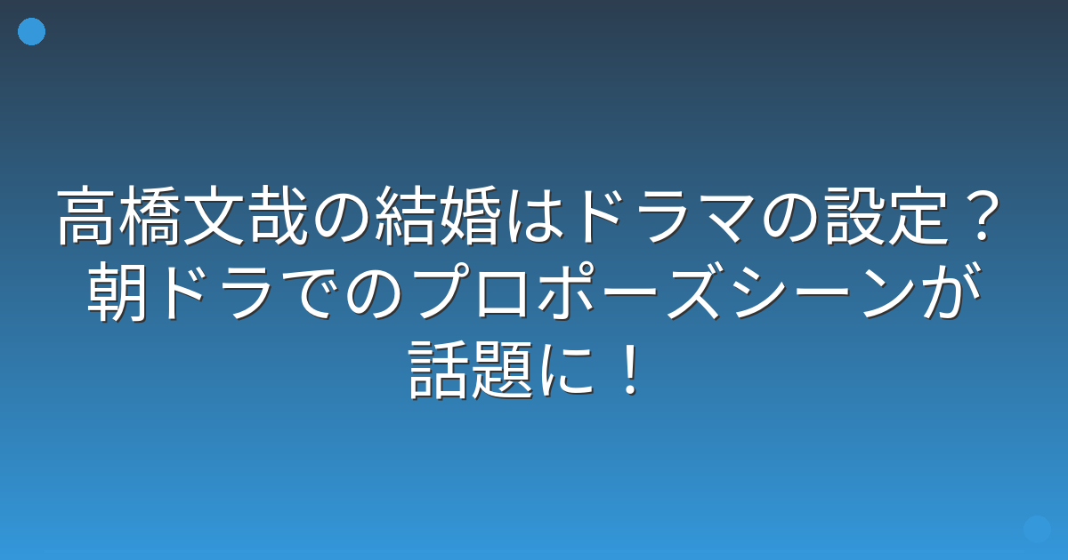 高橋文哉さんは実際には結婚していませんが、ドラマでの印象的なプロポーズシーンが大きな話題を呼んでいます。